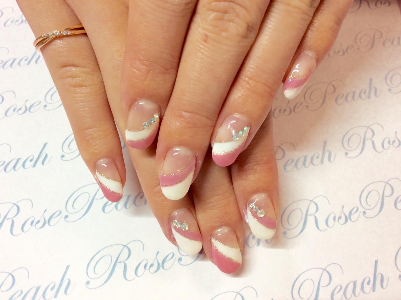 春らしくピンクと白のフレンチ(^^)