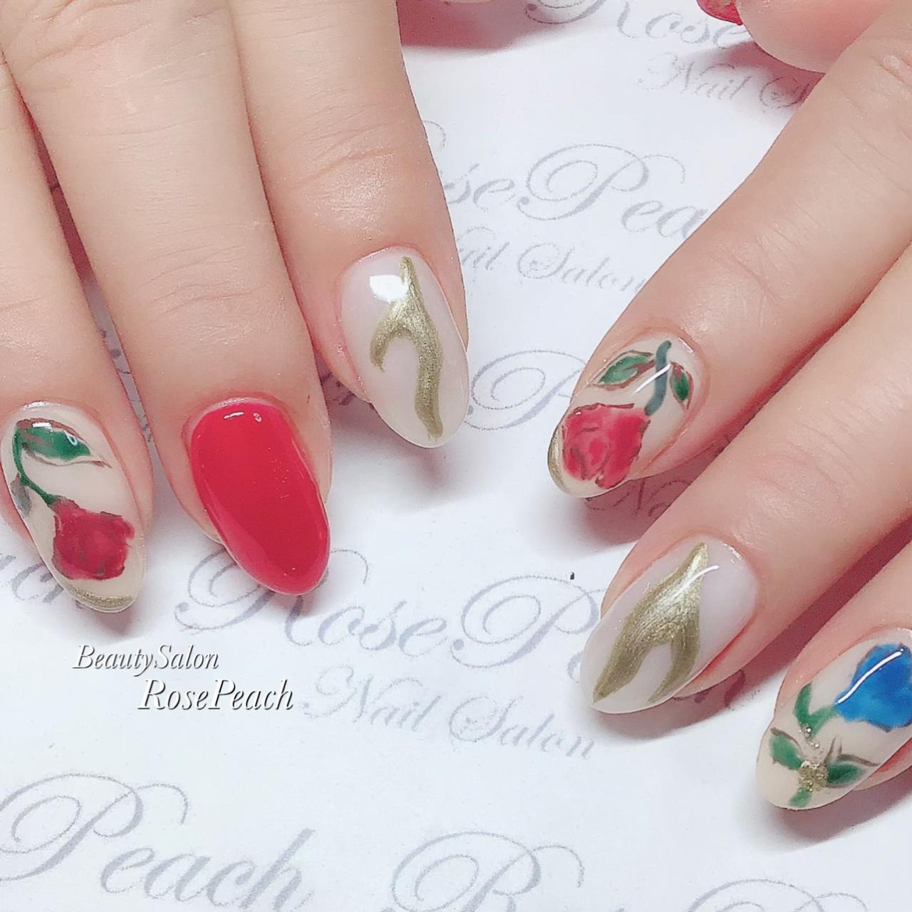 手描きアート 【BeautySalonRosePeach】【阪神西宮】【ネイル 】【爪育サロン】