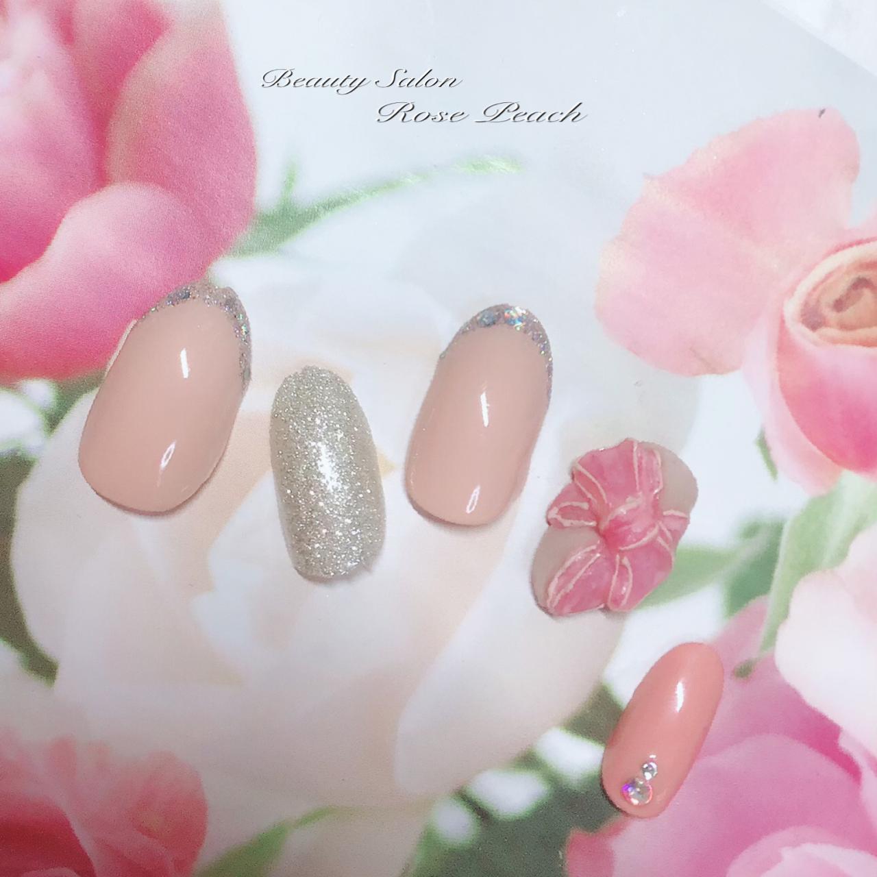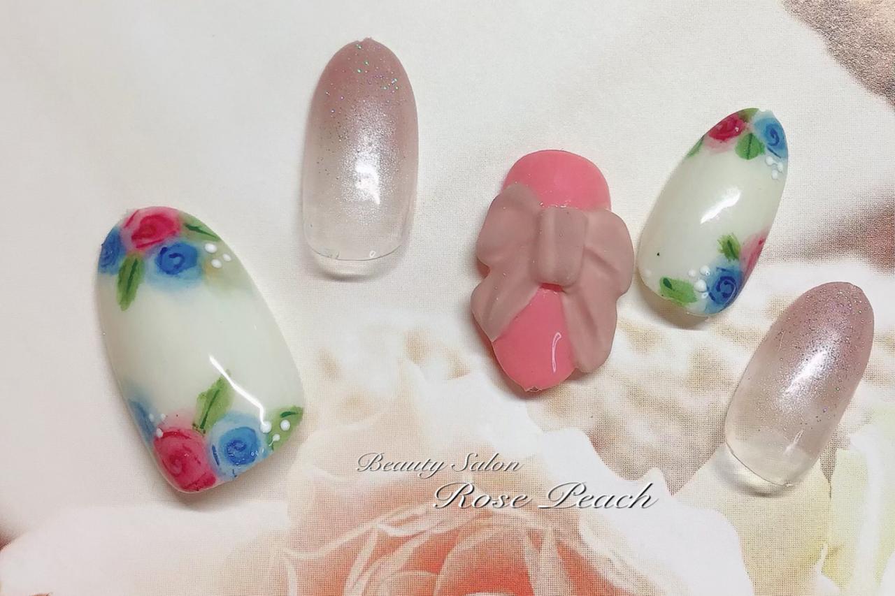 リボンandバラネイル【Beauty Salon Rose Peach】【阪神西宮】【 自爪育成サロン西宮】【ネイル】